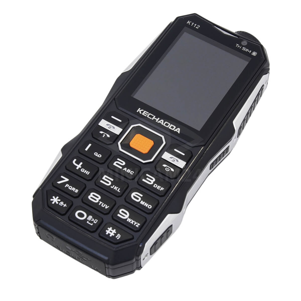 Мобильный телефон в противоударном корпусе с мягкими накладками. Рассчитан на установку трех SIM-карт, оснащен встроенным дисплеем диагональю 2,4 дюйма. Предусмотрены двойная камера, фонарик, радио, есть порт micro-USB. Съемный аккумулятор обеспечивает непрерывную работу гаджета в течение 300 минут в режиме разговора и 250 часов в режиме ожидания.