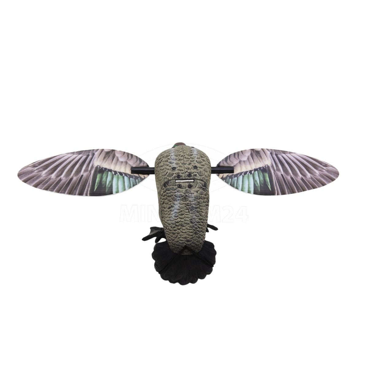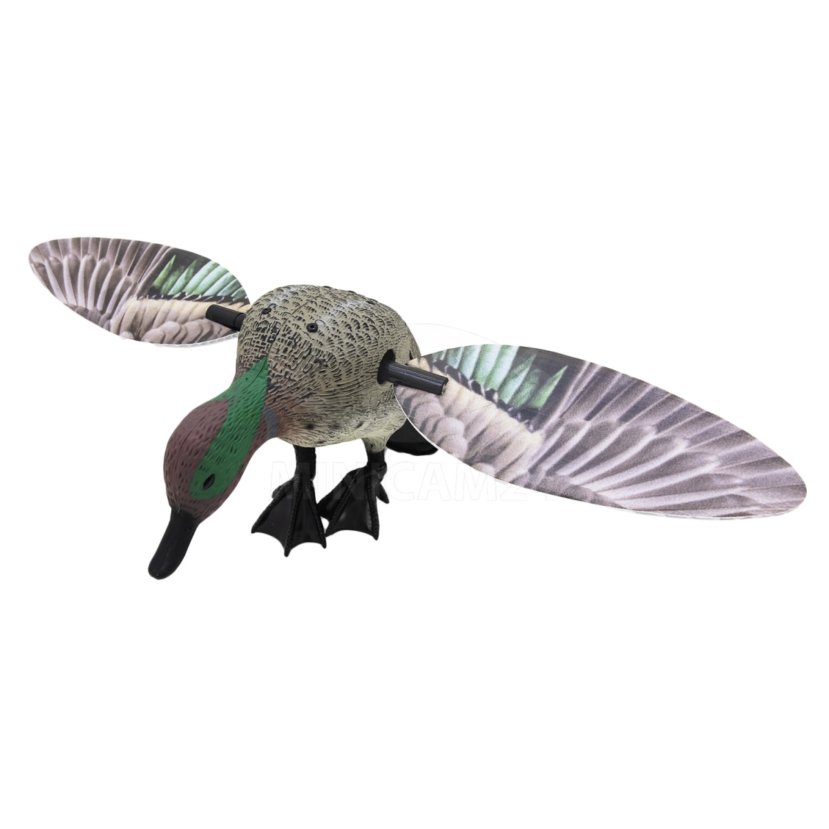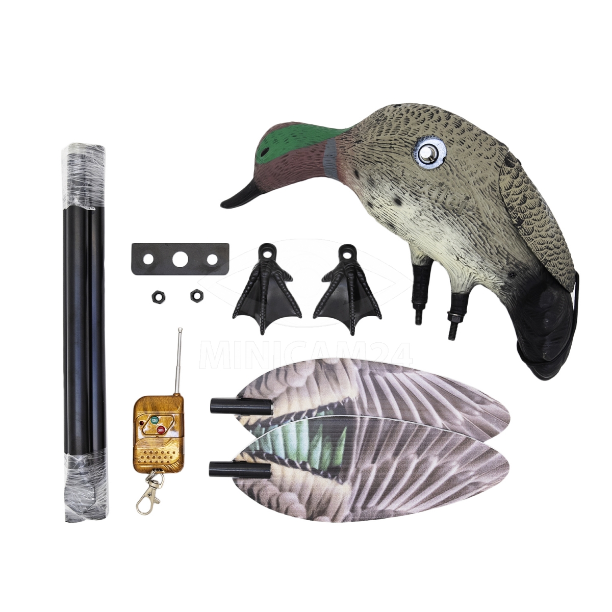 Механический махокрыл - приманка Чирок с пультом в виде настоящей утки поможет во время охоты. За счет имитации вида селезня махокрыл для охоты на уток приманит остальных птиц. Приманка с дистанционным пультом управления имеет складную структуру, поэтому риск сломать крылья во время транспортировки сведен к минимуму. Управляется махокрыл с пульта, на котором всего 2 кнопки управления для включения и выключения устройства. Радиус действия достигает 200 метров на открытой местности. Приманку в виде чирка можно регулировать по высоте за счет складного штатива в комплекте. Махокрыл нетбоится плохой погоды, краска не слезает даже после сильного дождя.